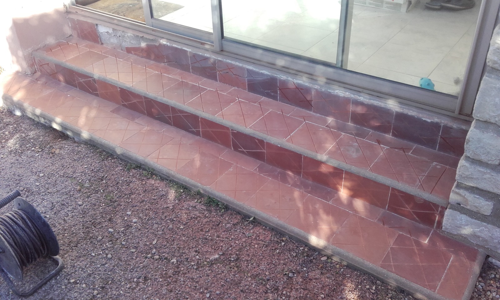 - Coupe et pose du nouveau carrelage et des margelles en pierre