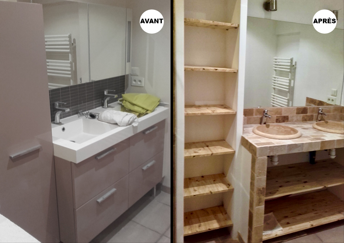 - Création et construction : plan de travail à carreler (pour pose de vasque), étagère en colonne…