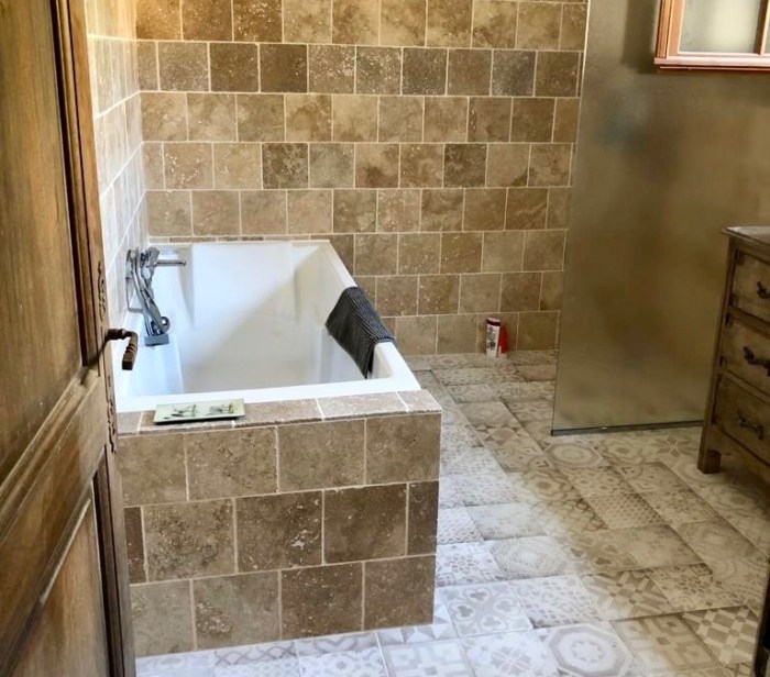 Toutes les salles de bain de Didelec (4 réalisations) Création salle de bain Création d'une salle de bain Vintage Plomberie (non existante avant travaux)Création et répartition des points d’arrivée d’eau Evacuation des eaux usées Pose WC…Electricité (non existante avant travaux) Maçonnerie Coulage d’une chape en béton et pose carrelage Pose faïence sur murs Construction du coffrage de baignoire Plafond : enduit … Lire la suite Salles de bain